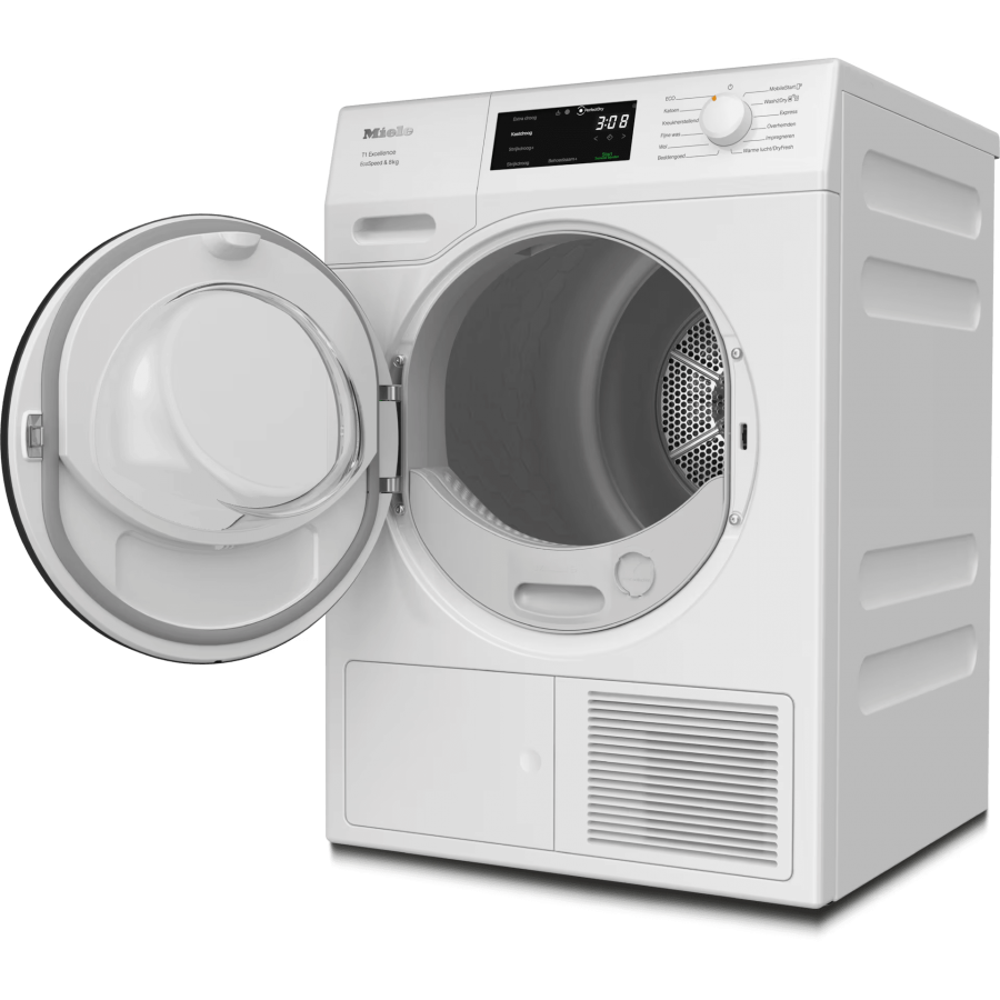 Met Wash2Dry communiceert de droger draadloos met compatibele Miele wasmachines om automatisch het ideale droogprogramma te selecteren op basis van wasgegevens. De onderhoudsvrije condensor elimineert schoonmaakwerkzaamheden en behoudt constante prestaties door automatische condenswaterafvoer, wat zorgt voor optimale energie-efficiëntie en minder slijtage.