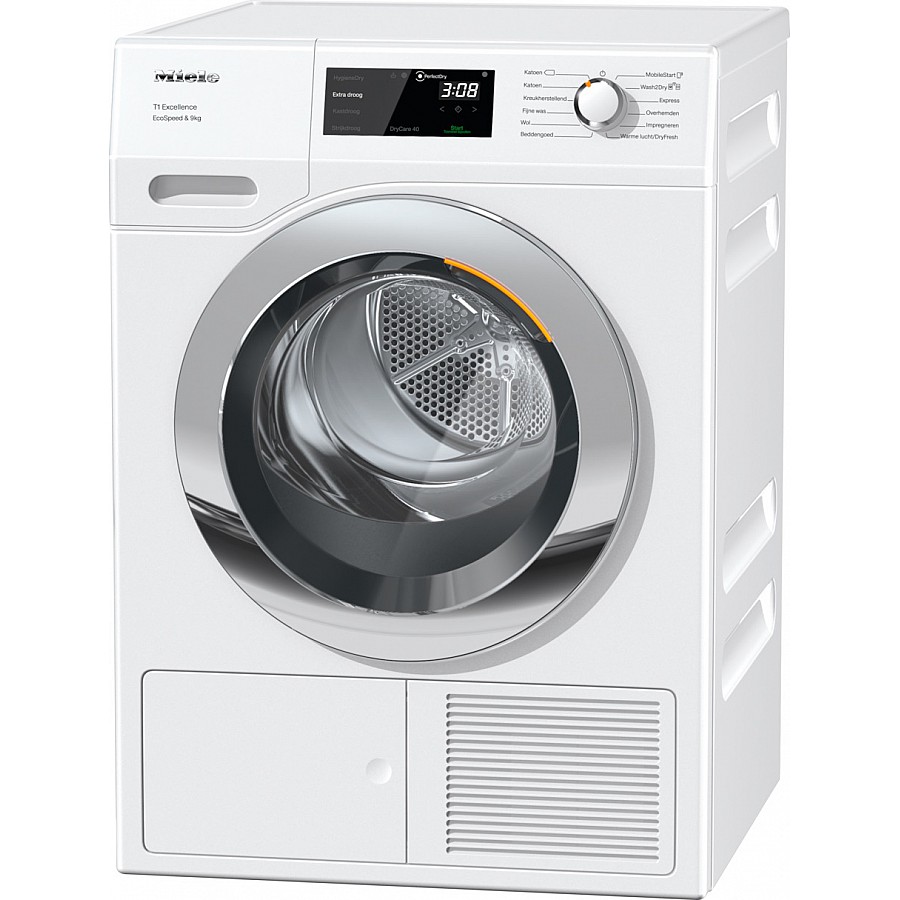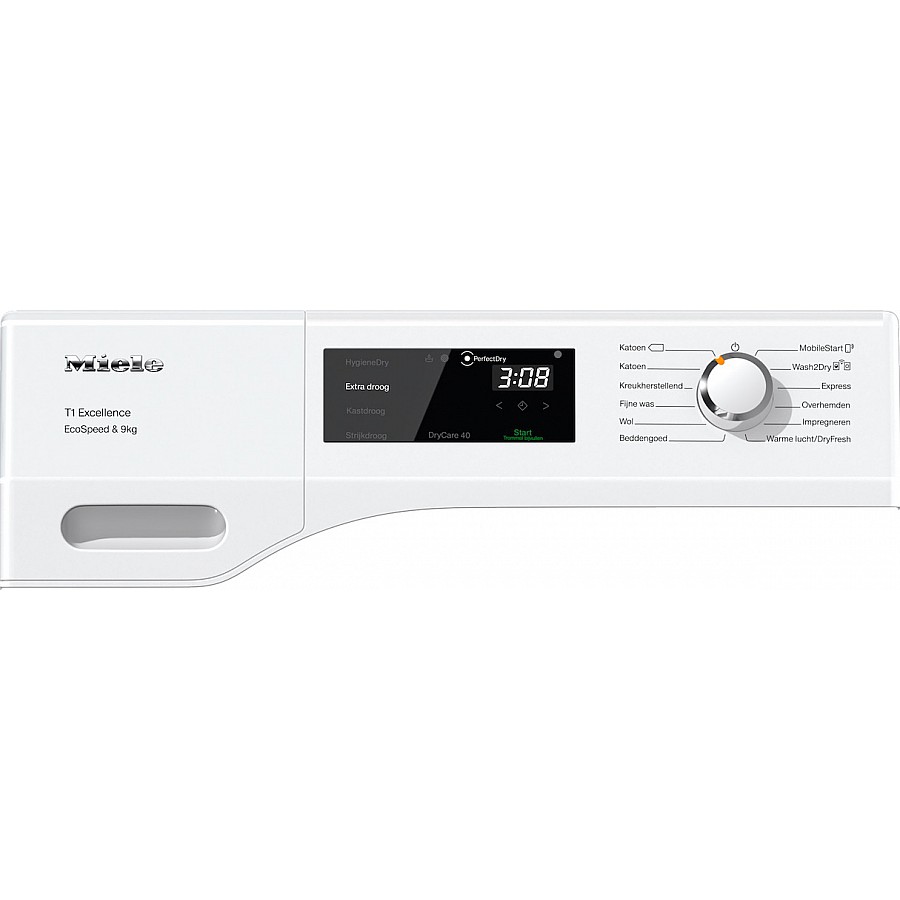 De zuinige warmtepompdroger uit de T1 serie van uit de Ecospeed serie van Miele beschikt uitgebreide opties en mogelijkheden. Zo heeft deze Miele een zuinig A+++ label, duidelijk schuingeplaatst display een vulgewicht van 9 kg en met de Softcare trommel is hij zuinig op uw wasgoed. De wasmachine heeft een ruime vulopening achter de fraaie solide deur van chroom. Dit maakt het in en uitladen van de wasdroger kinderspel.