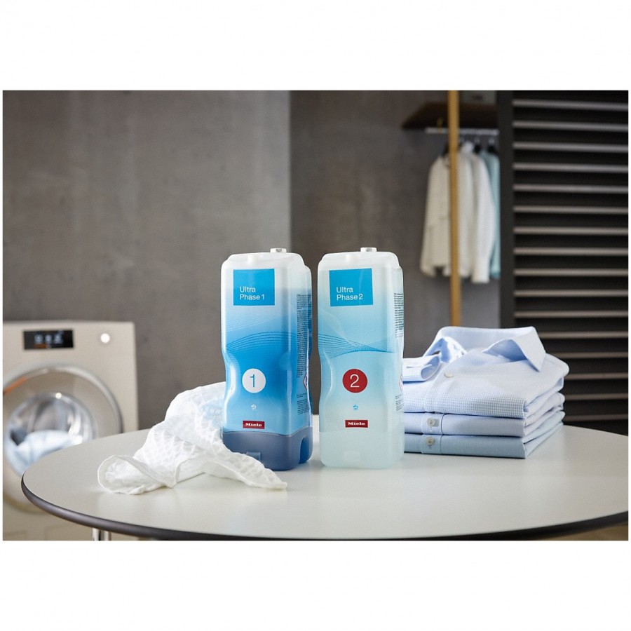 Miele UltraPhase 2 wasmiddel voor witte was, met extra vlekverwijderaar zoals optisch witmiddel. Nieuwe formule met de frisse Aqua geur. Voor heldere kleuren en stralend witte was. Uitstekende vlekverwijdering, ook bij lage temperaturen.