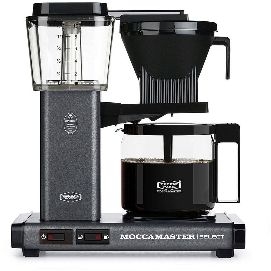 De Moccamaster KBG SELECT is een koffiefilter apparaat, geschikt voor het zetten van zowel 6 als 10 koppen koffie. Dankzij de nieuwe keuzeschakelaar selecteer je of je een volle of halve pot koffie wilt zetten, zonder dat de volle smaak van de koffie verloren gaat.