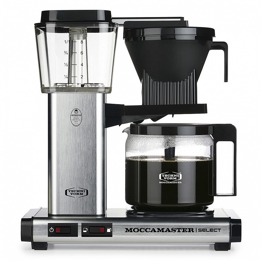 De Moccamaster KBG SELECT is een koffiefilter apparaat, geschikt voor het zetten van zowel 6 als 10 koppen koffie. Dankzij de nieuwe keuzeschakelaar selecteer je of je een volle of halve pot koffie wilt zetten, zonder dat de volle smaak van de koffie verloren gaat.
