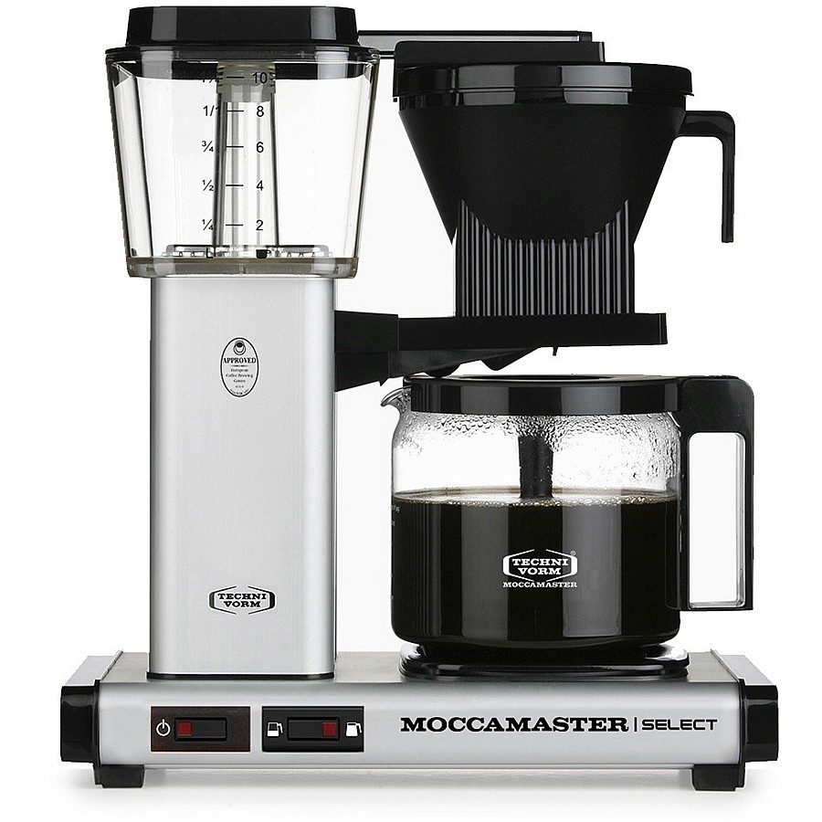 De Moccamaster KBG SELECT is een koffiefilter apparaat, geschikt voor het zetten van zowel 6 als 10 koppen koffie. Dankzij de nieuwe keuzeschakelaar selecteer je of je een volle of halve pot koffie wilt zetten, zonder dat de volle smaak van de koffie verloren gaat.