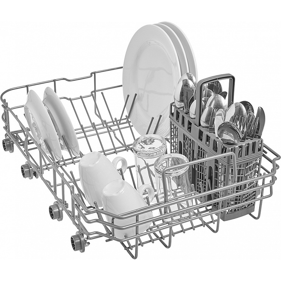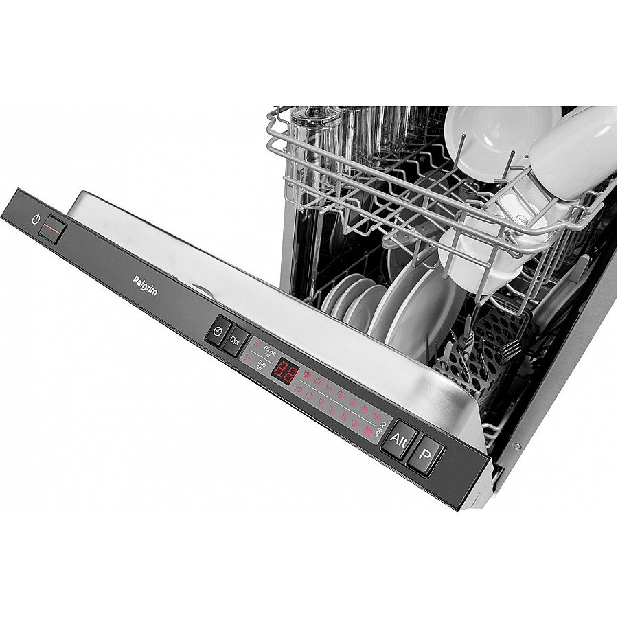 De Pelgrim GVW100L is een 45 cm. brede inbouw vaatwasser uitgevoerd een bestekmand in de onderkorf en een geluidsniveau van 44 dB. Met een energieklasse D label verbruikt deze smalle vaatwasser relatief weinig stroom.