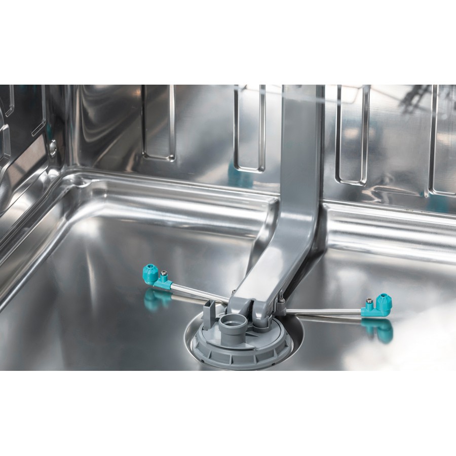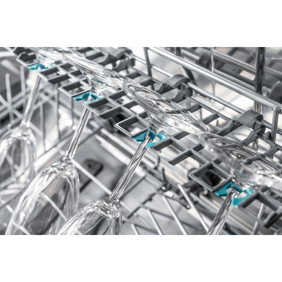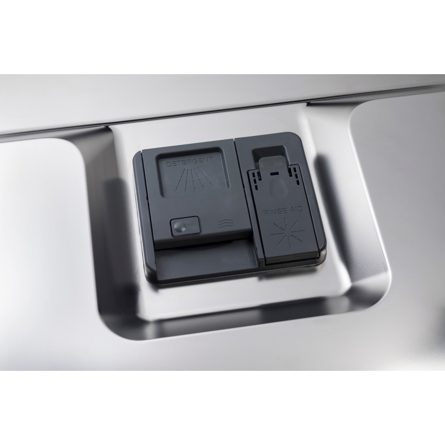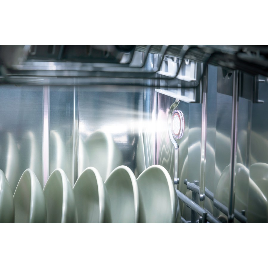 De vaatwasser biedt ruimte aan 16 couverts en is voorzien van 7 wasprogramma’s. De bovenkorf is in hoogte verstelbaar die je zelfs met volle belading in hoogte kunt verstellen. De besteklade kan in de breedte ingeschoven worden waardoor er nog meer ruimte ontstaat voor bijvoorbeeld hoge wijnglazen of vazen. Zo kun je de machine enorm flexibel indelen en door de ledverlichting in de kuip heb je optimaal zicht. De vaatwasser valt in energieklasse C en is met een geluidsniveau van 42 dB(A) zeer stil. Erg handig is het zelfreinigingsprogramma. Met één druk op de knop maakt de vaatwasser zich automatisch schoon.