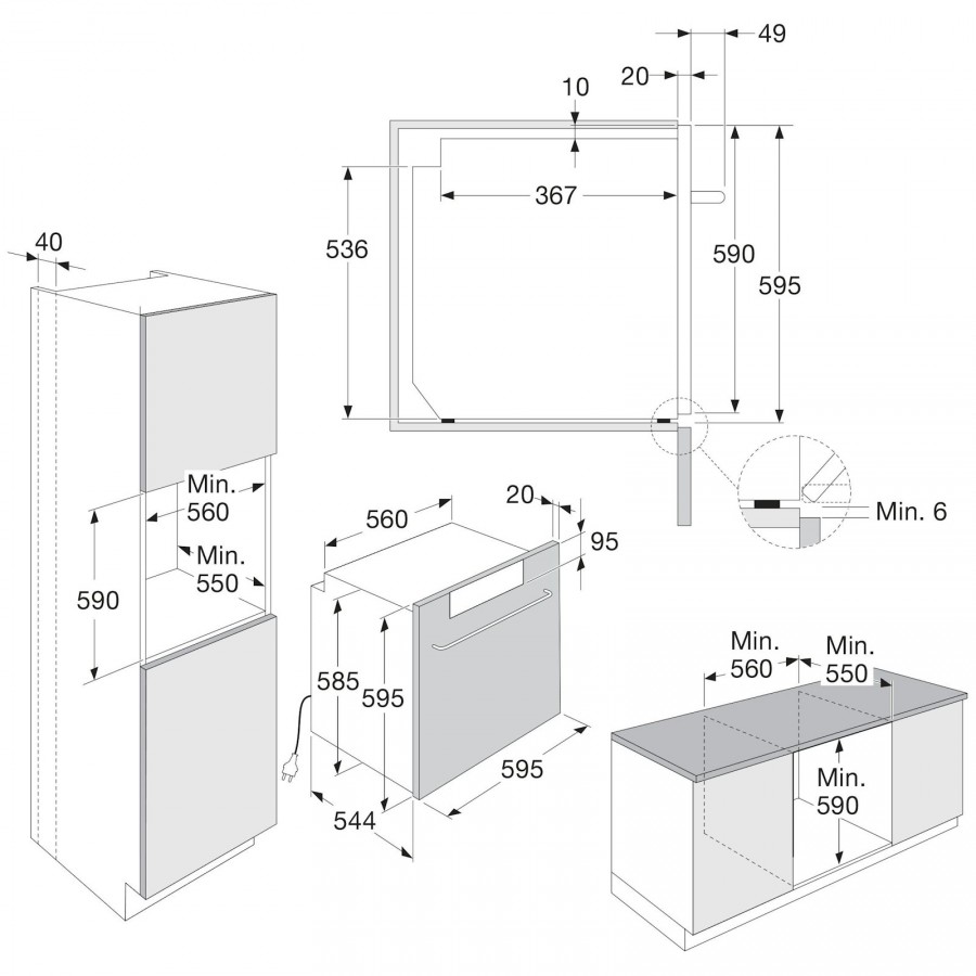 | Minimale nisdiepte | 550 mm |