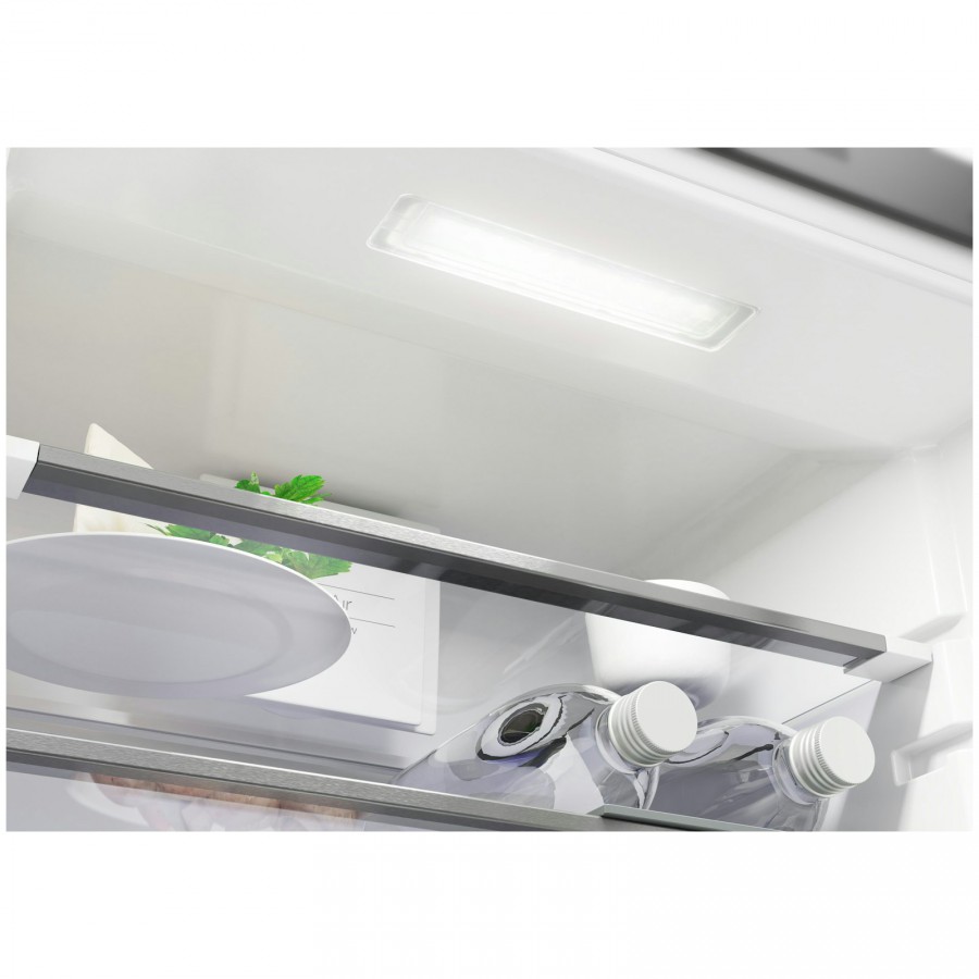 Hoe vaak gaat de koelkast open en dicht? En op welke tijdstippen? De AdaptCool functie monitort deze gegevens en past op basis van die informatie de temperatuur aan. Gaat de koelkast bijvoorbeeld tussen 7.00 en 8.00 uur vaak open, dan wordt voor die tijd de temperatuur verlaagd. Dat betekent dat de koelkast na 8.00 uur minder hard hoeft te koelen om alle levensmiddelen weer op de juiste temperatuur te krijgen. Zo bespaar je energie en blijven producten tot 20% langer vers.