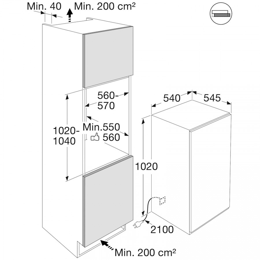 | Minimale nisdiepte | 550 mm |