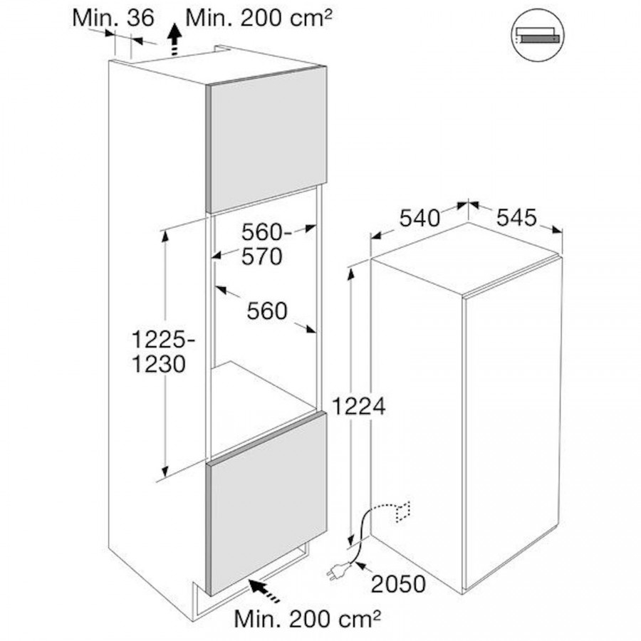 | Minimale nisdiepte | 560 mm |
