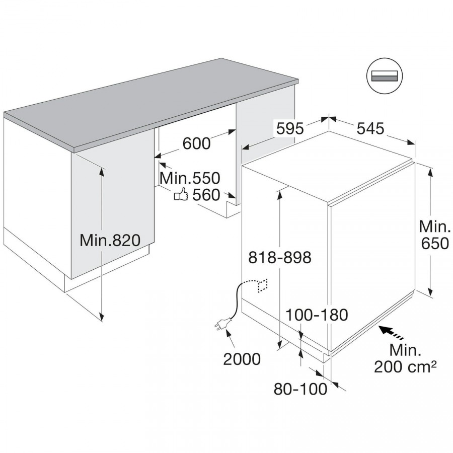 | Maximale nisdiepte | 550 mm |