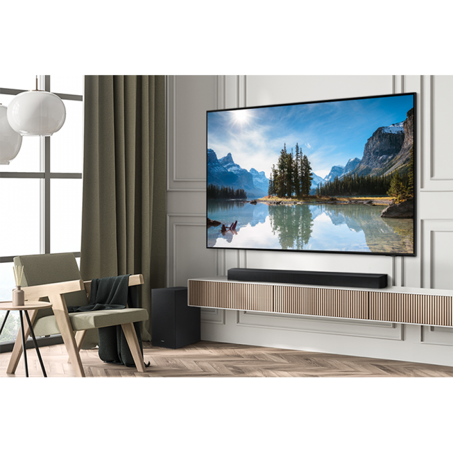De Samsung HW-B650D biedt een indrukwekkende geluidskwaliteit dankzij Dolby Audio en DTS Virtual:X. Deze technologieën zorgen ervoor dat het geluid in alle richtingen om je heen beweegt, waardoor je volledig opgaat in je entertainment. Of je nu een film kijkt of muziek luistert, de ervaring wordt levensecht.