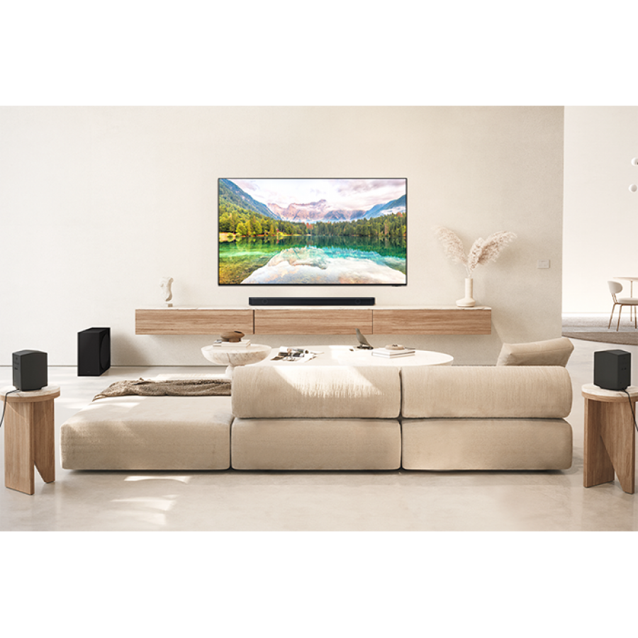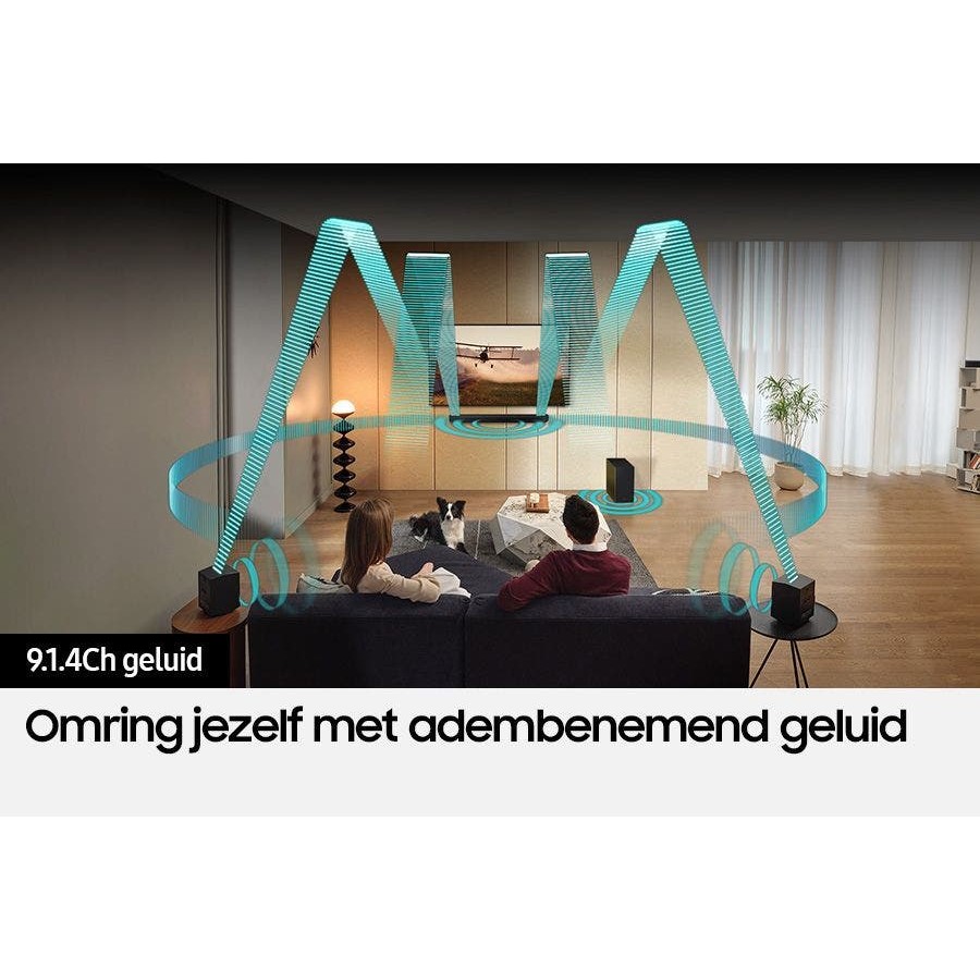 De HW-Q930D levert een levensechte geluidservaring dankzij het 9.1.4-kanaals systeem. Upfiring speakers weerkaatsen het geluid via het plafond, waardoor het lijkt alsof het geluid van bovenaf komt. Draadloze achterspeakers en sidefiring units zorgen samen met de krachtige subwoofer voor een echt bioscoopgevoel in je woonkamer.