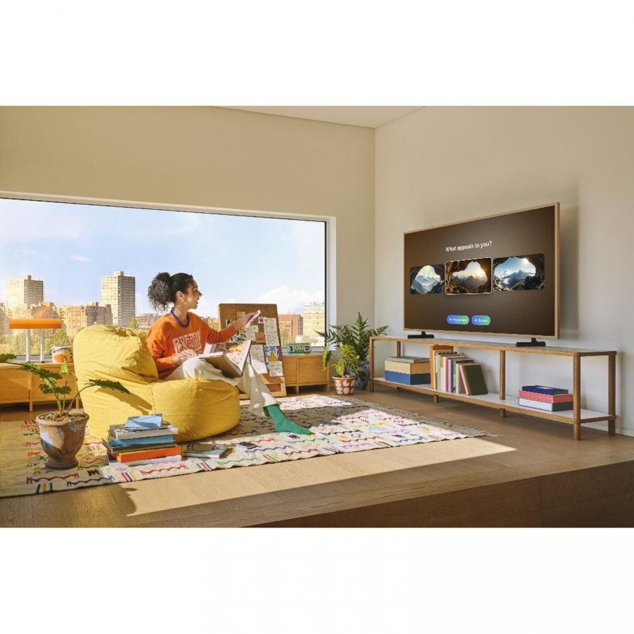 Wanneer de televisie in de stand-by stand staat, activeert de slimme sensor automatisch de Art Mode en toont een geselecteerd kunstwerk uit de uitgebreide online galerij of uw eigen digitale fotocollectie, waardoor uw muur direct transformeert tot een persoonlijke galerijruimte die uw interieur verrijkt.