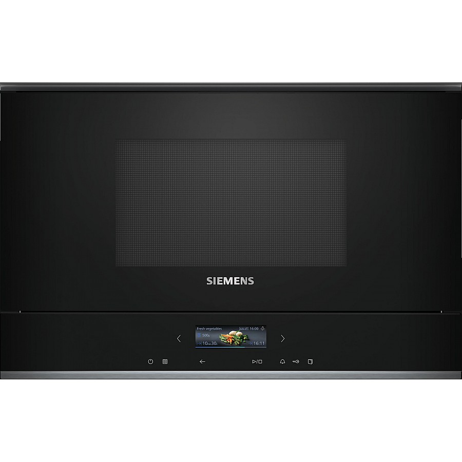 De Siemens BF722L1B1 is een inbouw magnetron met een inhoud van 21 liter. De inbouw magnetron van Siemens heeft een nishoogte van 38 cm. Met een vermogen van 900 W kun je met de Siemens BF722L1B1 eenvoudig je maaltijden opwarmen.