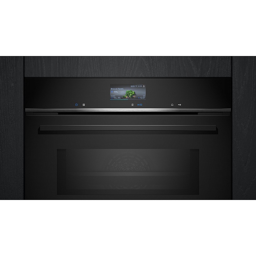 Ontdek de veelzijdigheid van de Siemens CM776GMB1F inbouwoven met magnetron, die met een inhoud van 45 liter goed aansluit op uw culinaire behoeften. Met deze oven met magnetron functie kunt u moeiteloos een breed scala aan gerechten kunt bereiden.