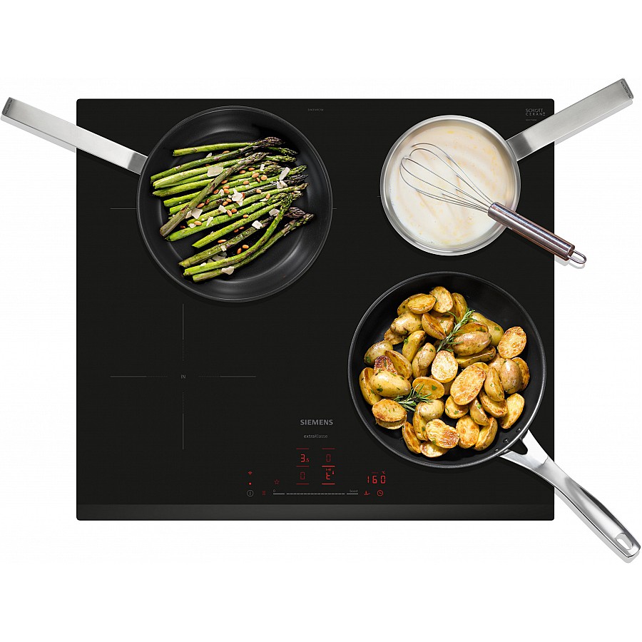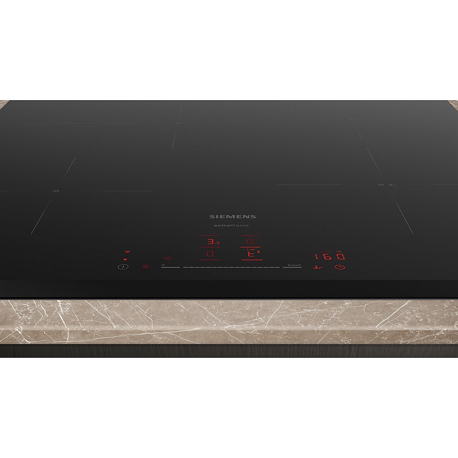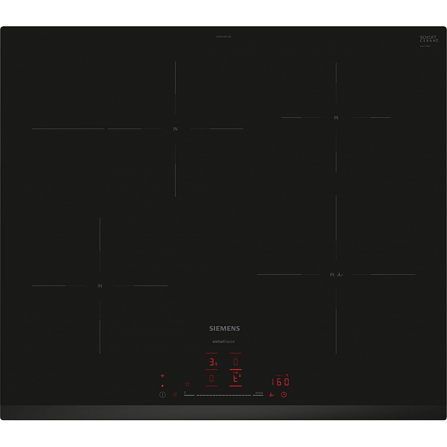 Deze solide gebouwde Siemens EH631HFC1M inductie kookplaat beschikt over 4 kookzones. De stijlvol vormgegeven Siemens kookplaat heeft een breedte van 60 cm. Koken op inductie is de meest comfortabele en energie efficiënte manier van eten bereiden. Inductie kookplaten vragen een elektrische aansluiting. Deze kookplaat heeft een aansluitwaarde van 7400 Watt.