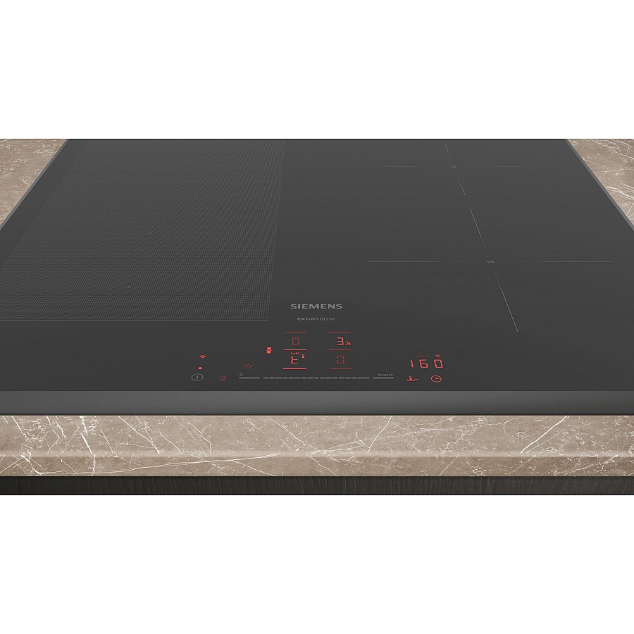 Deze solide gebouwde Siemens EX651HEC1M inductie kookplaat beschikt over 4 kookzones. De stijlvol vormgegeven Siemens kookplaat heeft een breedte van 60 cm. Koken op inductie is de meest comfortabele en energie efficiënte manier van eten bereiden. Inductie kookplaten vragen een elektrische aansluiting. Deze kookplaat heeft een aansluitwaarde van 7400 Watt.