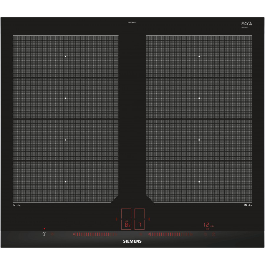 Deze solide gebouwde Siemens EX675LXC1E inductie kookplaat beschikt over 4 kookzones. De stijlvol vormgegeven Siemens kookplaat heeft een breedte van 60 cm. Koken op inductie is de meest comfortabele en energie efficiënte manier van eten bereiden. Inductie kookplaten vragen een elektrische aansluiting. Deze kookplaat heeft een aansluitwaarde van 7400 Watt.