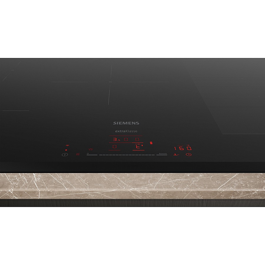 Deze fraai gebouwde Siemens EX851HVC1M inductie kookplaat beschikt over 5 kookzones. De stijlvol vormgegeven Siemens kookplaat heeft een breedte van 60 cm. Koken op inductie is de meest comfortabele en energie efficiënte manier van eten bereiden. Inductie kookplaten vragen een elektrische aansluiting. Deze kookplaat heeft een aansluitwaarde van 7400 Watt.