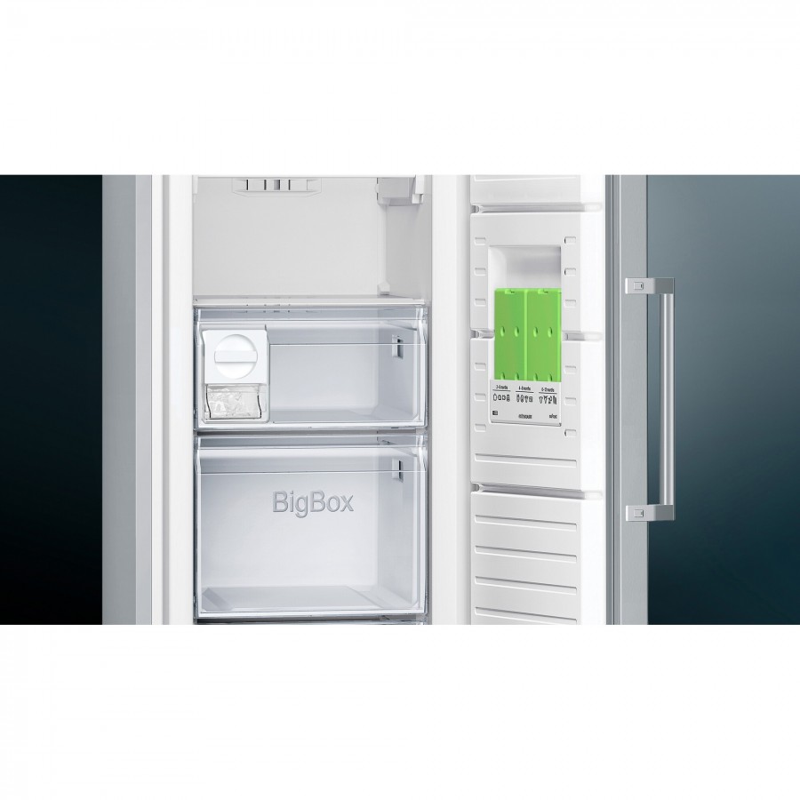 Deze Siemens GS36NGIEV vrijstaande vrieskast biedt uitzonderlijk gemak dankzij de geavanceerde NoFrost-technologie, waardoor u nooit meer handmatig hoeft te ontdooien en uw apparaat energiezuinig blijft werken. Met het flexibele varioZone-systeem kunt u eenvoudig lades en plateaus herschikken voor een perfecte indeling die aansluit bij uw boodschappen. Geniet te allen tijde van verfrissende ijsblokjes door simpelweg aan de handige iceTwister hendel te trekken, zonder dat u ijsvormpjes hoeft te manipuleren. De multiAirflow zorgt voor een constante en gelijkmatige temperatuurverdeling, zodat al uw ingevroren producten onder ideale omstandigheden worden bewaard en hun versheid behouden. De moderne, geborsteld stalen afwerking is voorzien van een speciale anti-vingerafdruk coating, wat zorgt voor een strakke uitstraling die eenvoudig schoon te houden is.
