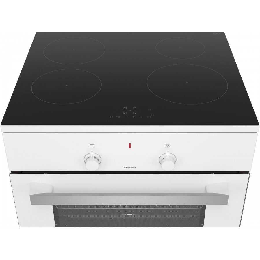 Het inductiefornuis beschikt over intuïtieve draaiknoppen met verlichting voor precieze temperatuurregeling, zelfs in donkere keukens. Het gladde oppervlak en de eenvoudige bediening maken reiniging moeiteloos, terwijl het moderne witte design naadloos past in elke keukeninrichting.