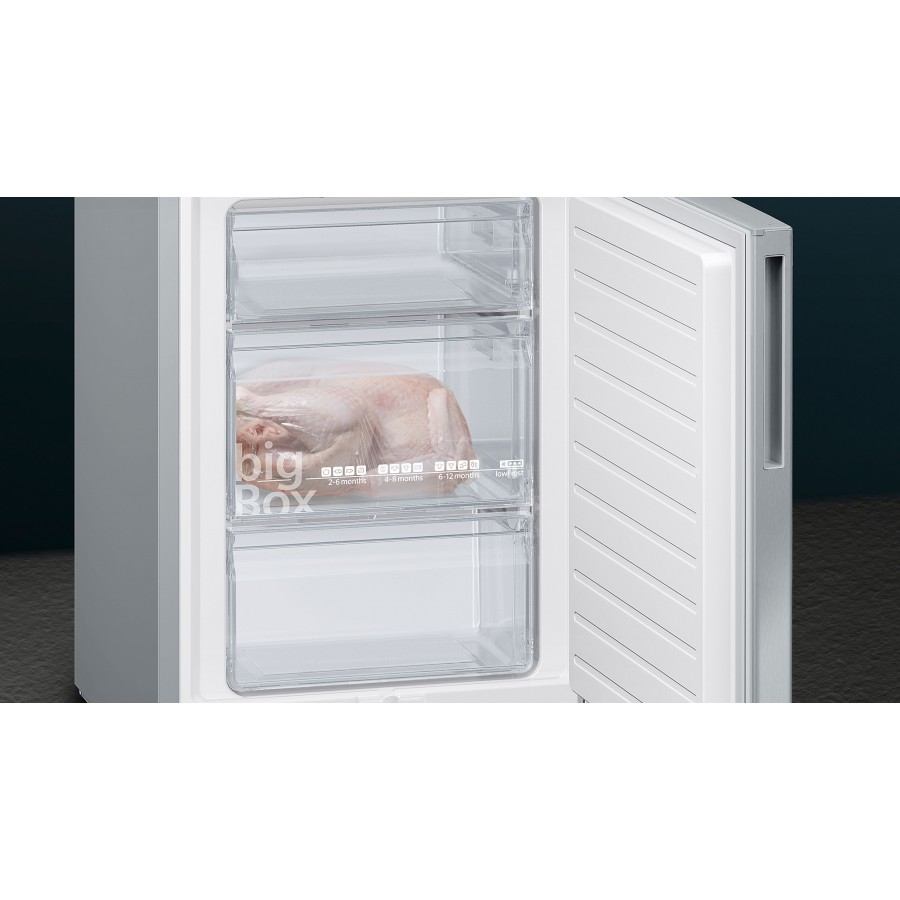 Deze Siemens KG39EALCA vrijstaande koel-vriescombinatie heeft een totale netto inhoud van 343 liter. De koelkast heeft een zuinig energielabel C en een geluidsniveau van 38 dB. Energiezuinige LED verlichting verlicht de binnenzijde helder en gelijkmatig.