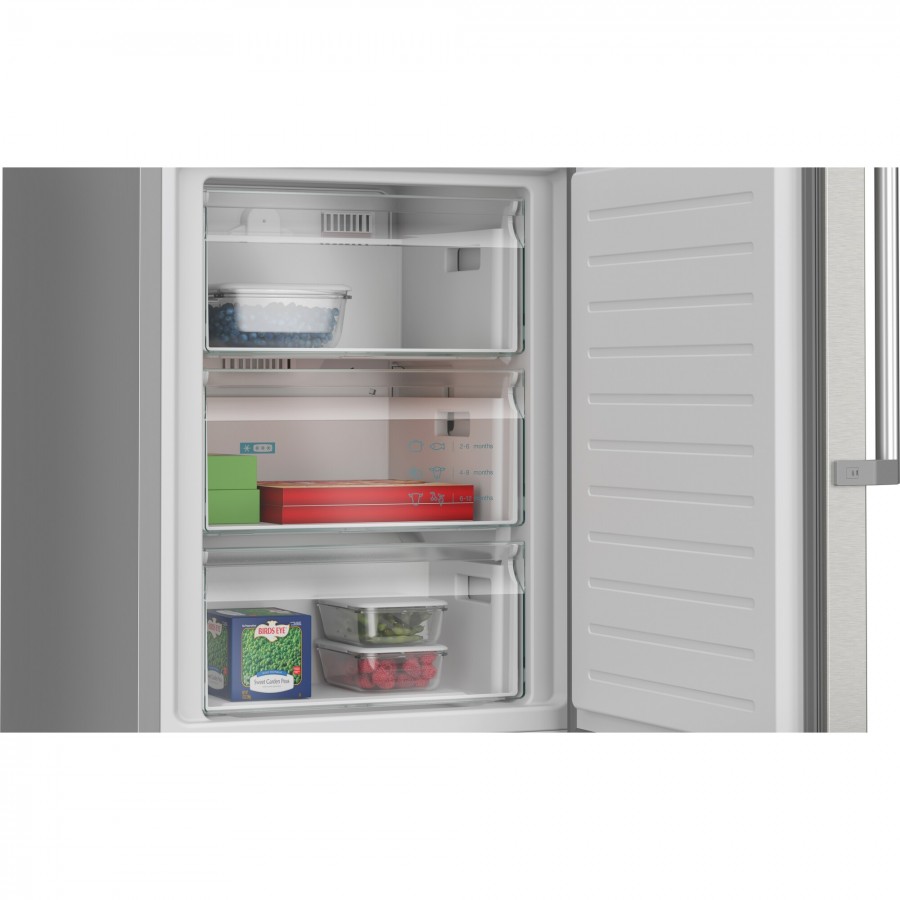 Het Total NoFrost systeem voorkomt actief ijsvorming in zowel het koel- als vriesgedeelte door vocht continu af te voeren. Dit geavanceerde proces elimineert niet alleen het vervelende handmatig ontdooien, maar zorgt er ook voor dat er geen waterdruppels meer op de achterwand verschijnen. U geniet altijd van een schone en efficiënte koelkast en vriezer, wat zorgt voor constante prestaties en een langere levensduur van uw voedselvoorraad zonder enige ijsopbouw.
