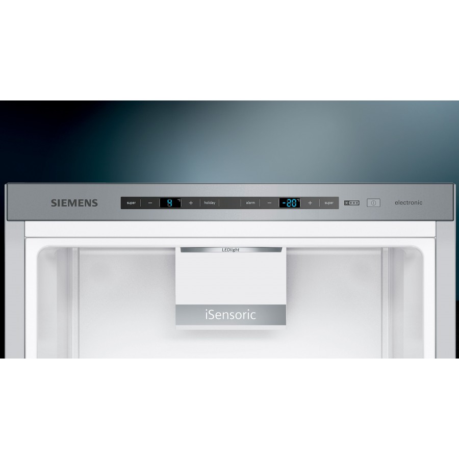 Deze Siemens KG49EAICA vrijstaande koel-vriescombinatie heeft een totale netto inhoud van 419 liter. De koelkast heeft een zuinig energielabel C en een geluidsniveau van 38 dB. Energiezuinige LED verlichting verlicht de binnenzijde helder en gelijkmatig.