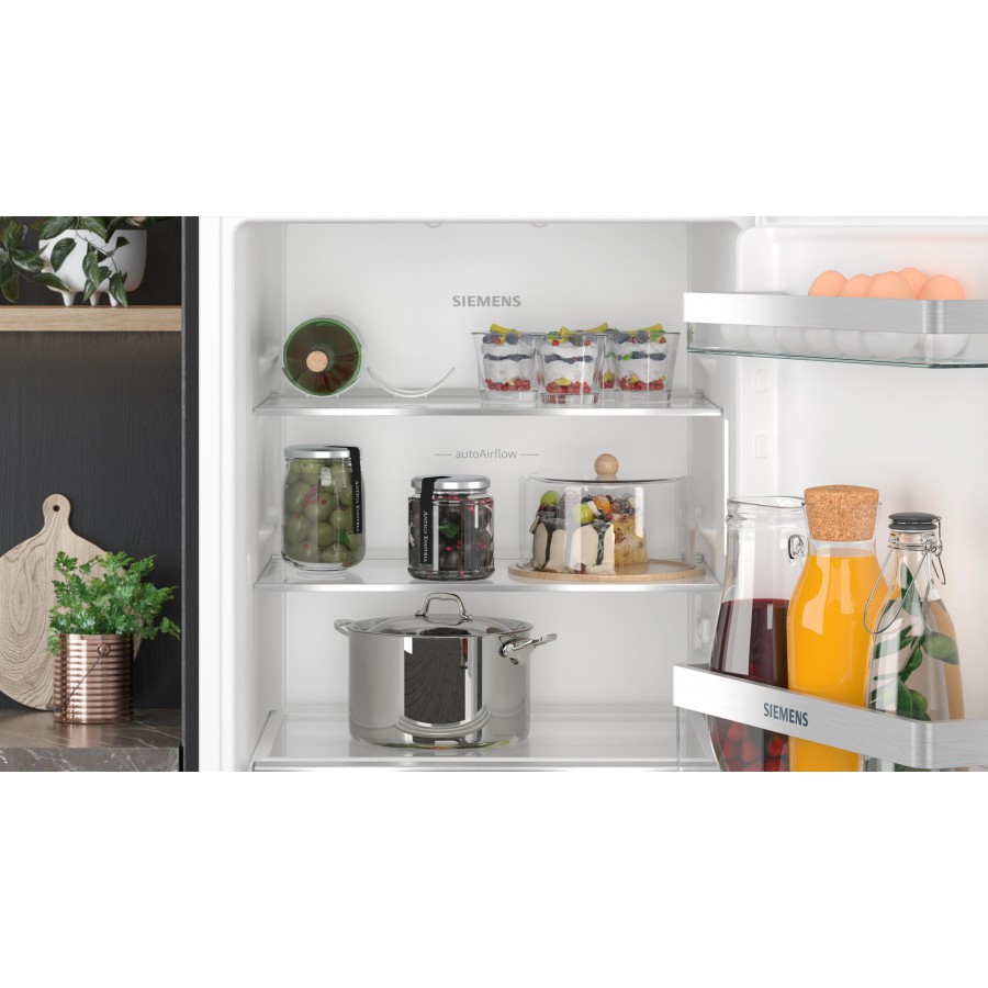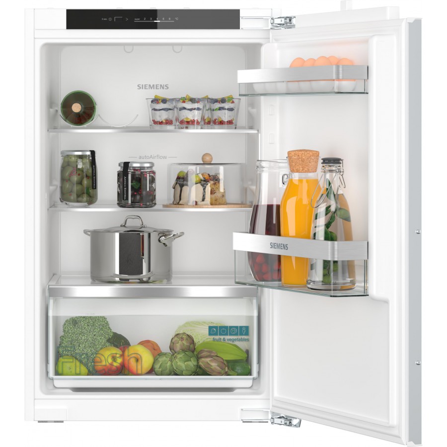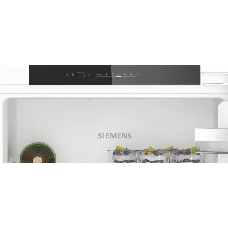 Deze Siemens KI21RVFE0 inbouw koelkast heeft een totale netto inhoud van 136 ltr. De koelkast heeft een zuinig energielabel E en een geluidsniveau van 35 dB. Energiezuinige LED verlichting verlicht de binnenzijde helder en gelijkmatig.
