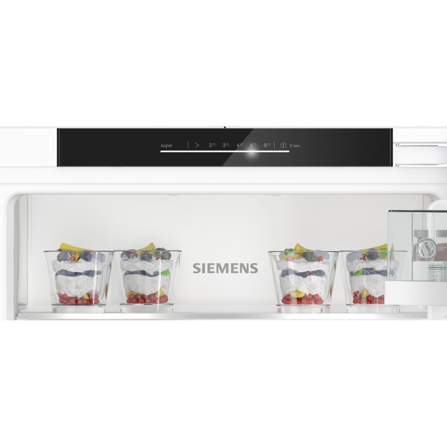 Deze Siemens KI41REDD1 inbouw koelkast heeft een totale netto inhoud van 204 ltr. De koelkast heeft een zuinig energielabel D en een geluidsniveau van 28 dB. Energiezuinige LED verlichting verlicht de binnenzijde helder en gelijkmatig.