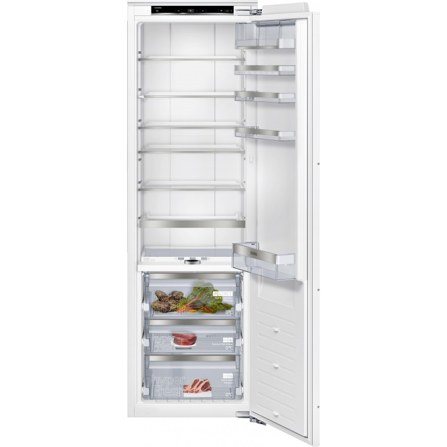 Deze Siemens KI81FPDE0 inbouw koelkast heeft een totale netto inhoud van 289 ltr. De koelkast heeft een zuinig energielabel E en een geluidsniveau van 37 dB. Energiezuinige LED verlichting verlicht de binnenzijde helder en gelijkmatig.