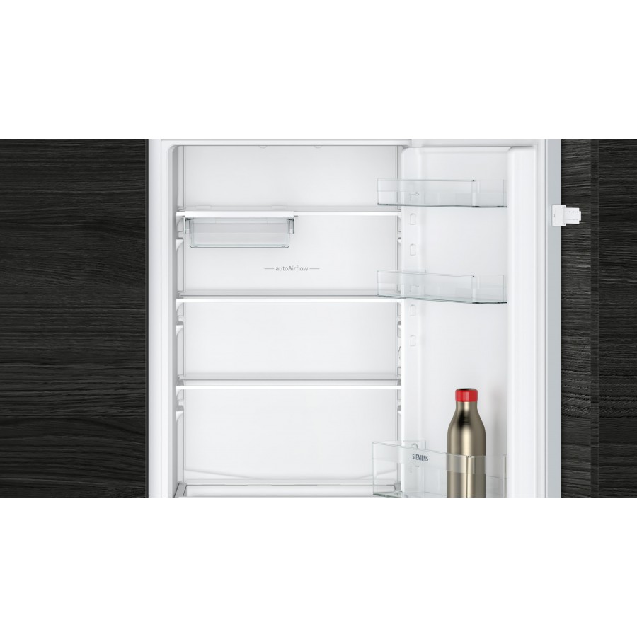 De koelruimte zit bij deze koel-vriescombinatie aan de bovenzijde en is 183 ltr groot. Het vriesgedeelte aan de onderzijde heeft een inhoud van 84 ltr. Deze inbouw koelkast heeft een nishoogte van 178 cm en het meubelpaneel van uw keuken monteert u met een sleepdeur systeem.