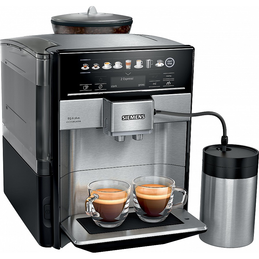 Wilt u met één druk op de knop een perfecte cappuccino, espresso of latte macchiato? Dan staat de Siemens TE657F03DE extraKlasse altijd voor u paraat. Bij deze koffiemachine zit een overzichtelijke EQ.6 display en heeft u de mogelijkheid om twee melkdranken tegelijk te zetten.