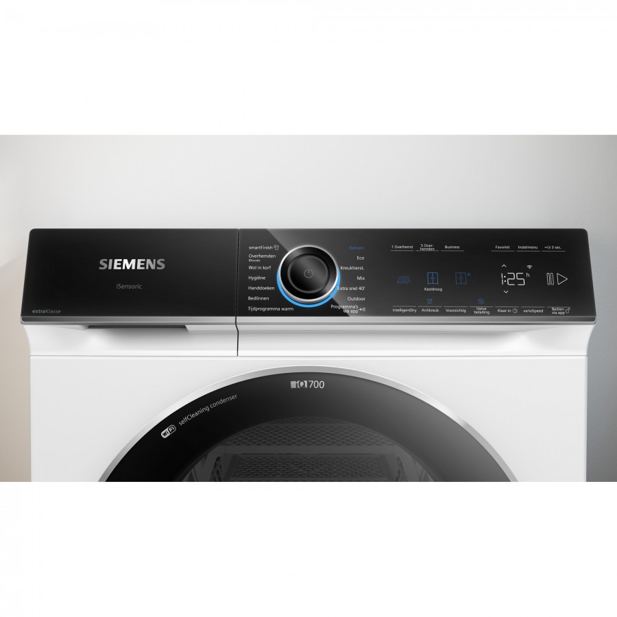 Deze Siemens WQ46B2CENL warmtepompdroger combineert uitzonderlijke droogprestaties met een laag energieverbruik, dankzij de geavanceerde warmtepomptechnologie. De zelfreinigende condensor zorgt voor consistente resultaten en minimaliseert het onderhoud, terwijl de autoDry en intelligentDry sensoren ervoor zorgen dat je wasgoed altijd perfect en zorgvuldig gedroogd wordt zonder te krimpen. Met de smartFinish functie wordt kreukeling tot wel vijftig procent gereduceerd, wat aanzienlijk minder strijken betekent. De volledige integratie met Home Connect biedt ongekend gemak door bediening op afstand, spraakbesturing en de mogelijkheid om je apparaten met elkaar te laten communiceren voor een naadloze ervaring.