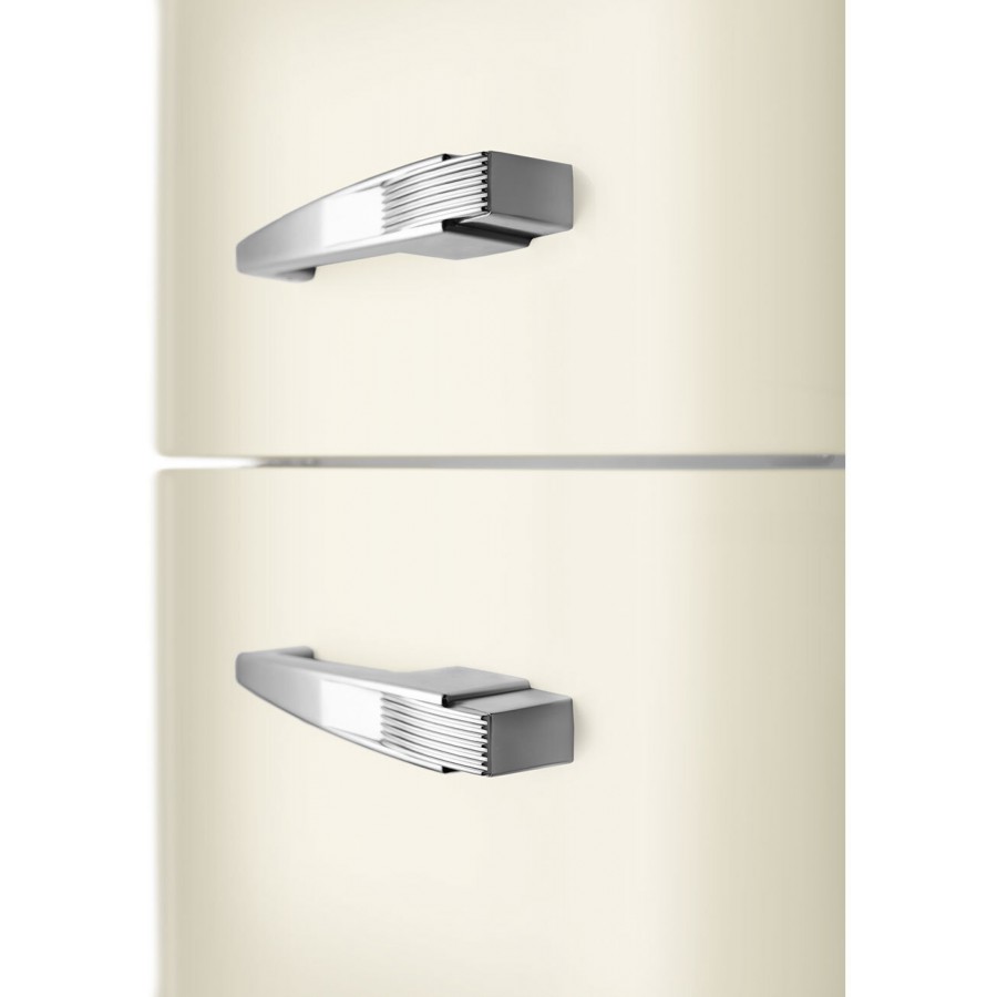 De Smeg FAB30LCR6 combineert het karakteristieke jaren 50-design met hedendaagse technologie. De afgeronde vormen, chromen details en cremekleurige afwerking creëren een nostalgische uitstraling, terwijl het geventileerde koelsysteem met elektronische temperatuurregeling zorgt voor optimale prestaties. Dankzij deze combinatie geniet u van zowel stijlvolle presentatie als betrouwbare voedselconservatie in uw keuken.