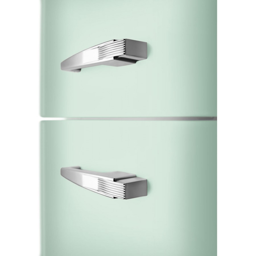De Smeg FAB30LPG6 combineert het karakteristieke jaren 50-design met hedendaagse koeltechnologie. De afgeronde vormen, chromen handgreep en watergroene kleur creëren een unieke stijl, terwijl het geavanceerde koelsysteem zorgt voor optimale prestaties. Dankzij deze combinatie van vorm en functie wordt de koelkast zowel een sieraad als een praktisch huishoudelijk apparaat.