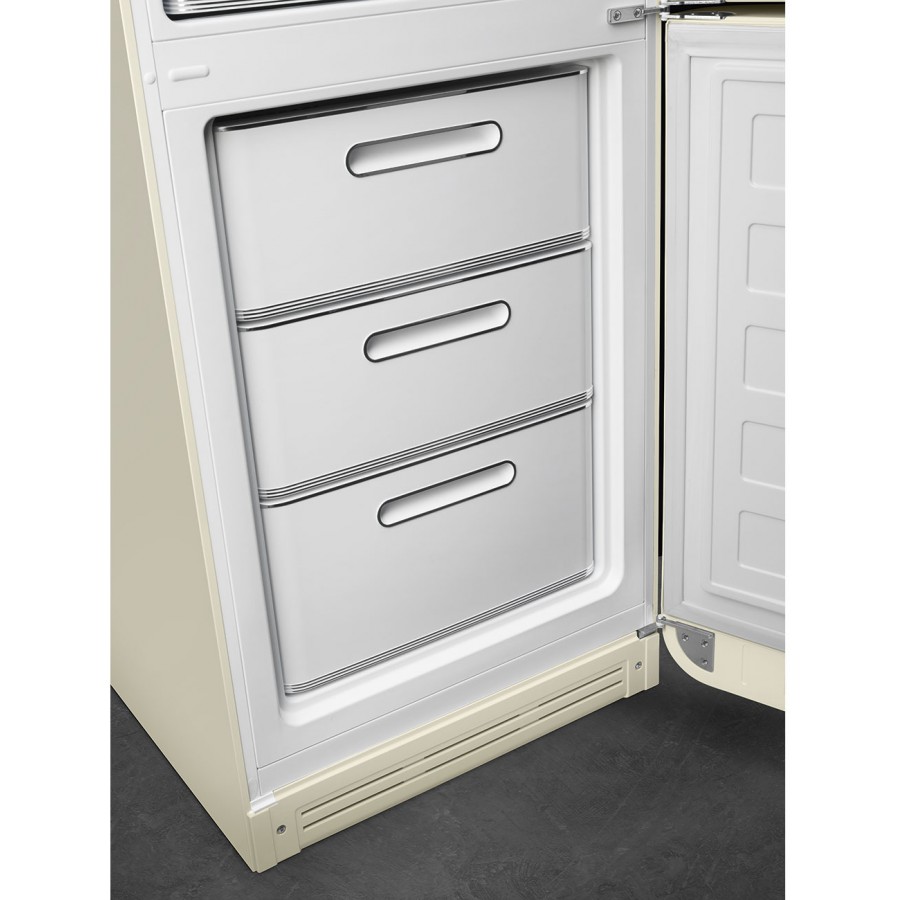 De Smeg FAB32RCR5 is één van de meest verkochte kleuren uit de FAB serier. Deze crème uitgevoerde koel/vriescombinatie ontworpen van het bekende jaren '50 design van SMEG. Een waar icoon dus! Zuinig uitvoering (energieklasse D label) en een volledig No-Frost vriesgedeelte, waarmee handmatig ontdooien tot het verleden behoort.