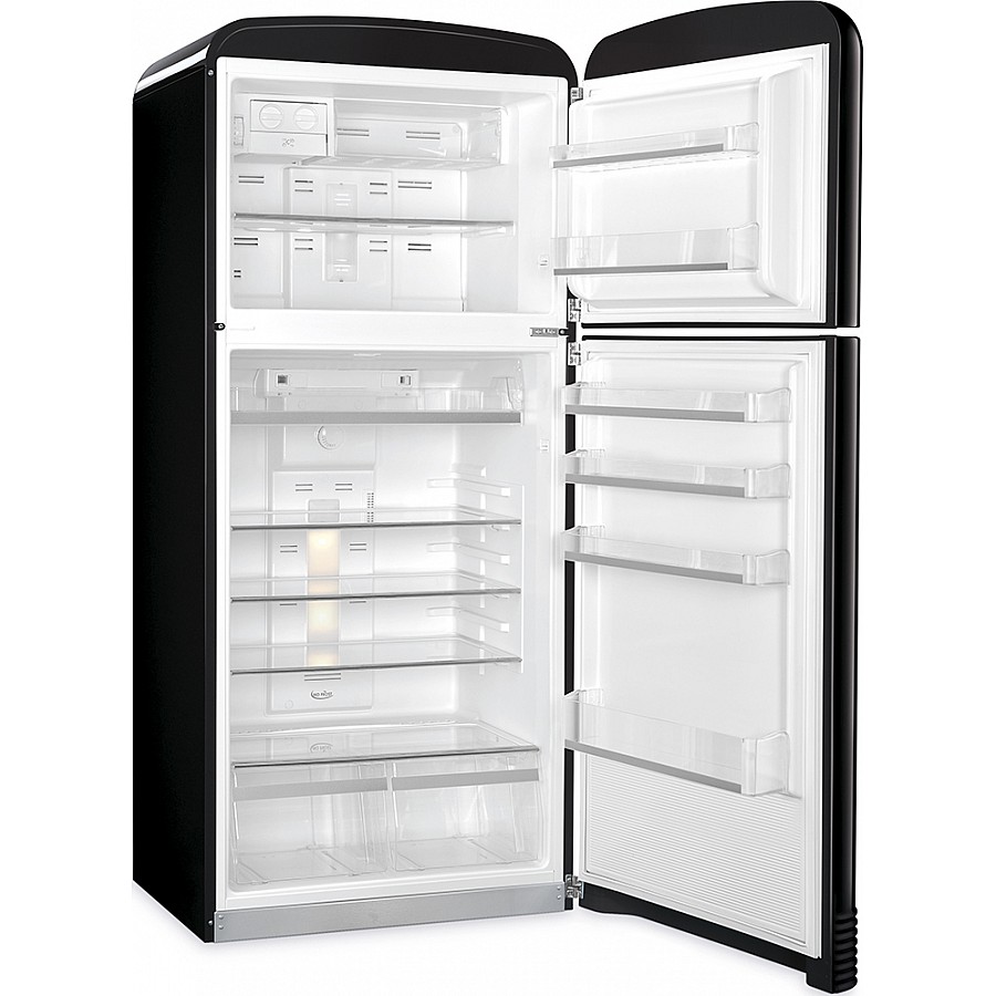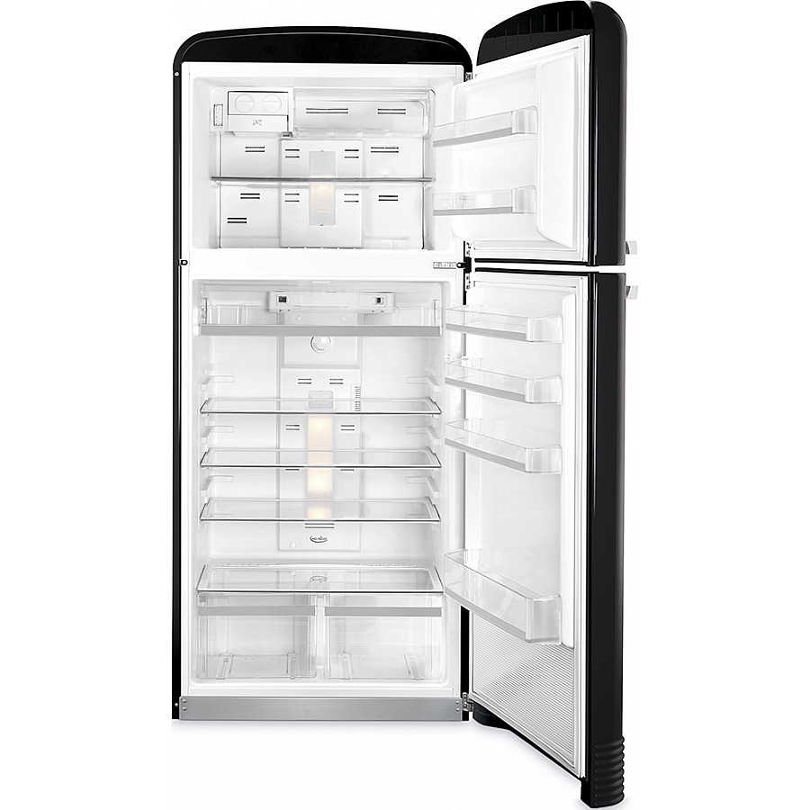 De hoogglans zwarte Smeg FAB50RBL5 koel-vriescombinatie is de grootste dubbeldeurs koelkast uit het gamma van Smeg. De kast is uitgevoerd in de stijl van de jaren '50 en behoort tot één van de iconen uit de Smeg collectie. Ondanks zijn klassieke uiterlijk beschikt hij over de modernste functies en eigenschappen van deze tijd. Deze prachtige kast is een ware blikvanger voor je keuken. De koel-vriescombinatie heeft een E energielabel, waardoor je dagelijks op je energierekening bespaart.