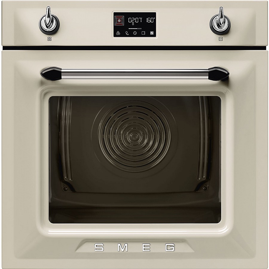 De Smeg SOP6902S2PP is een multifunctionele inbouw oven uitgevoerd met een pyrolyse functie en behorend tot de 'Victoria' serie van Smeg. Deze in de kleur crème uitgevoerd oven is verder voorzien van een stoomfunctie, heeft een nishoogte van 60 cm. en beschikt over een netto inhoud van 68 liter.