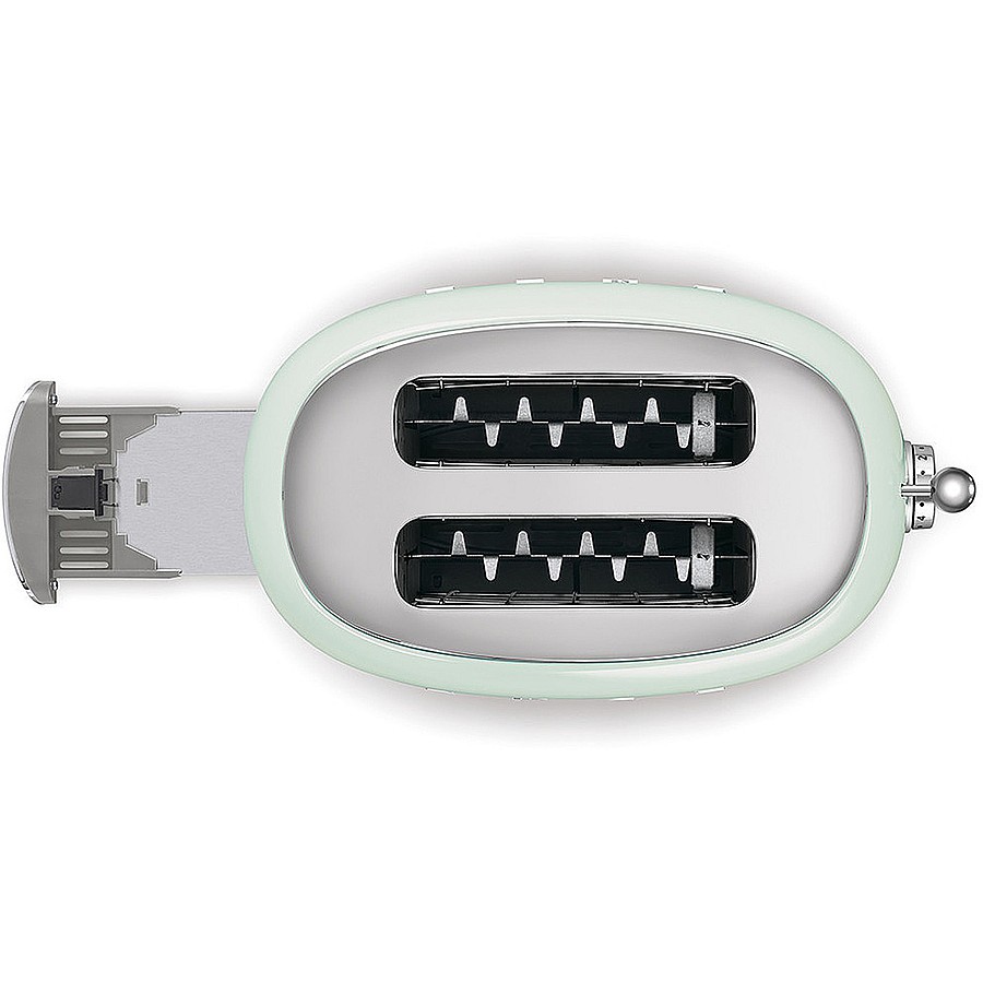 Het Smeg TSF01PGEU broodrooster heeft een klassiek jaren ’50 design in de kleur groen. De bedieningsknoppen zijn verlicht zodat je het broodrooster ook bij weinig licht in kunt stellen. Hij heeft plek voor twee sneetjes brood en met de ontdooifunctie kun je bevroren sneetjes ontdooien zonder ze te roosteren.