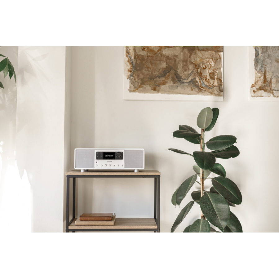 Door het grote aantal aansluitmogelijkheden en de grote keuze aan muziekbronnen van de Sonoro Primus haal je met deze radio een echte alleskunner is huis. Luister draadloos naar muziek via internetradio, DAB+ radio, Bluetooth of WiFi. De radio beschikt ook over een USB-aansluiting, een AUX-aansluiting en een optische ingang voor de TV. Ondanks het uitgebreide aantal functies blijft de Primus eenvoudig te bedienen via je smartphone, de afstandsbediening of de OKTIV-app.