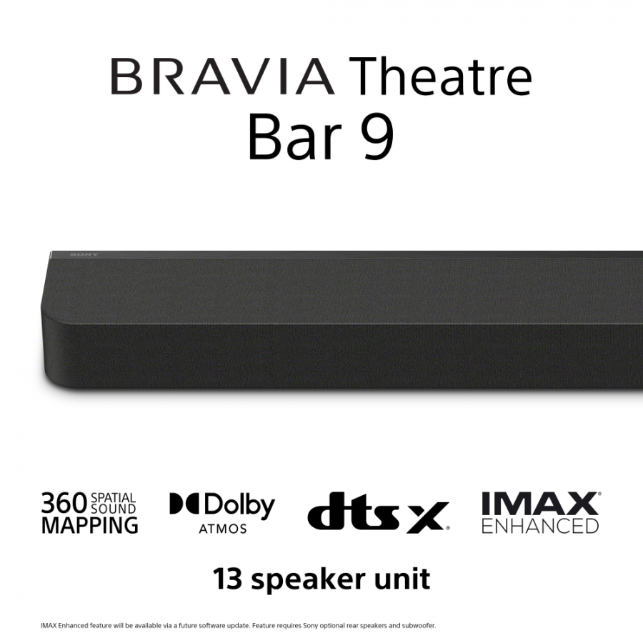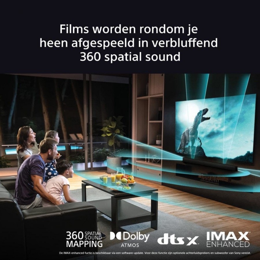 Met de Sony HT-A9000 BRAVIA Theater Bar 9 haal je het bioscoopgevoel in huis. Deze krachtige soundbar biedt je een meeslepende audio-ervaring met Dolby Atmos, DTS:X, en IMAX Enhanced, versterkt door Sony's 360 spatial sound mapping technologie.