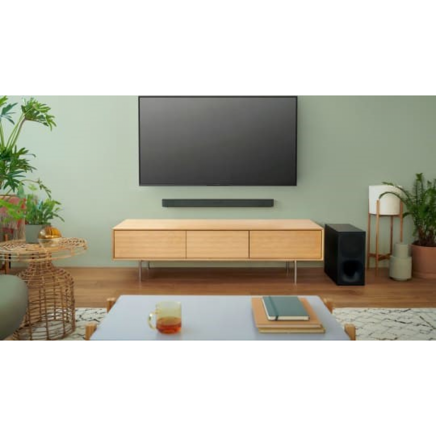 Je bevestigt de soundbar heel eenvoudig aan de muur zodat die naadloos in de woonkamer past. In tegenstelling tot de HT-S400 is deze soundbar niet draadloos te verbinden met de tv. Daarvoor heb je de keuze uit HDMI ARC en een optische ingang. De soundbar is binnen enkele seconden aan te sluiten. Verder is de Sony gemaakt van gerecycled plastic, waardoor het een duurzame soundbar is.