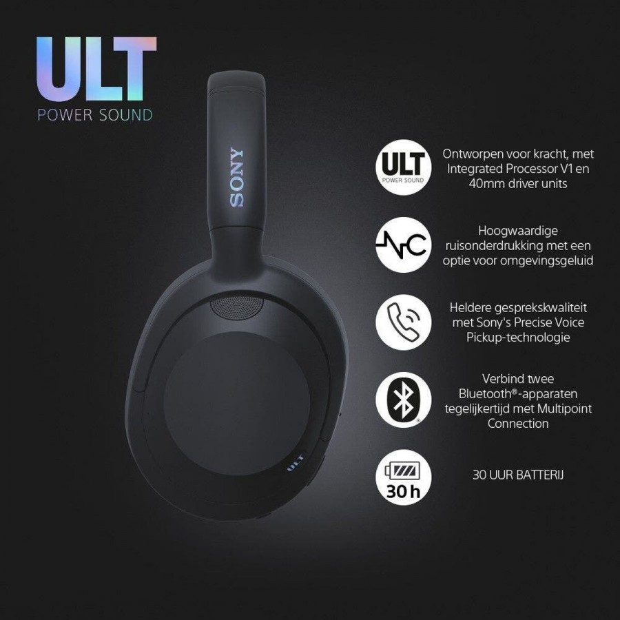 Deze Sony ULT WEAR- WH-ULT900NB on-ear hoofdtelefoon tilt je luisterervaring naar een nieuw niveau met zijn revolutionaire ULT POWER SOUND die een intense en diepe bas levert. Geniet van onovertroffen muziekzuiverheid dankzij geavanceerde ruisonderdrukking die je volledig afsluit van de buitenwereld, of kies juist voor de Ambient Sound Mode om je omgeving te horen. Met een indrukwekkende batterijduur van wel 30 uur en een comfortabel, inklapbaar ontwerp ben je de hele dag onderweg voorzien van krachtig geluid. Dankzij de snellaadfunctie en multipoint-connectie schakel je moeiteloos tussen apparaten voor een naadloze audio-ervaring.