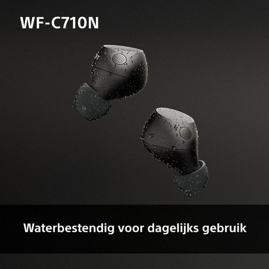 Deze Sony WF-C710N - Zwart in-ear hoofdtelefoon biedt een onovertroffen draadloze luisterervaring door geavanceerde noise cancelling technologie die je volledig onderdompelt in je muziek. Geniet van een indrukwekkende totale batterijduur van wel veertig uur, een comfortabel en waterbestendig ontwerp dat perfect is voor actief gebruik, en intelligente functies zoals AI-stemdetectie voor kristalheldere gesprekken. Deze oordopjes leveren krachtig en gedetailleerd geluid dat zich automatisch aanpast aan je luisteromgeving en je persoonlijke voorkeuren.