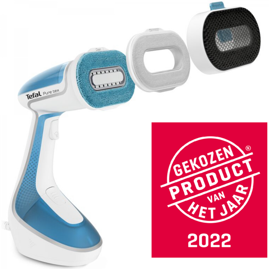 Natuurlijke zuiverende werking en indrukwekkend ontkreuken met de eerste 4-in-1 stomerMet de innovatieve en slimme functies is de Tefal Pure Tex kledingstomer gemaakt voor gemakkelijk onderhoud van kleding en ander textiel. De Tefal Pure Tex kledingstomer ontsmet, ontkreukt, maakt schoon en voegt een lekker geurtje toe. Dit allemaal in een gebruiksvriendelijk en exclusief multi-pad-systeem dat 4 mogelijkheden biedt in 1 gebruiksvriendelijke kledingstomer. 1. Ontsmetten: De stoomkracht zorgt voor hygiëne, minder onaangename geurtjes en verfrissing, doordat deze 99,9% van de virussen, bacteriën en ziektekiemen* doodt. 2. Ontkreuken: Dankzij de unieke technologie die een verwarmde stoomkop biedt met monotemp-regeling, 1700 W aan vermogen, een continue stoomafgifte tot wel 30 g/minuut en een exclusieve stoomstoot tot wel 90 g/min, verwijdert de Pure Tex kledingstomer kreukels in een efficiënte verticale beweging, zonder dat een strijkplank nodig is. 3. Schoonmaken: Het omkeerbare 2-in-1 opzetstuk verwijdert haar, stof en pluisjes van alle soorten textiel, zelfs van de moeilijkste stoffen of stoffen die niet gewassen kunnen worden. 4. Zorgt voor een lekker geurtje: Met het opzetstuk voor parfum kun je jouw favoriete geur toevoegen in het opzetstuk en met de stoom verspreiden op jouw kleding of ander textiel in huis. Dit alles in een ultrasnelle kledingstomer, klaar voor gebruik in 25 seconden, voor geweldige resultaten op al jouw kleding en ander textiel in huis.