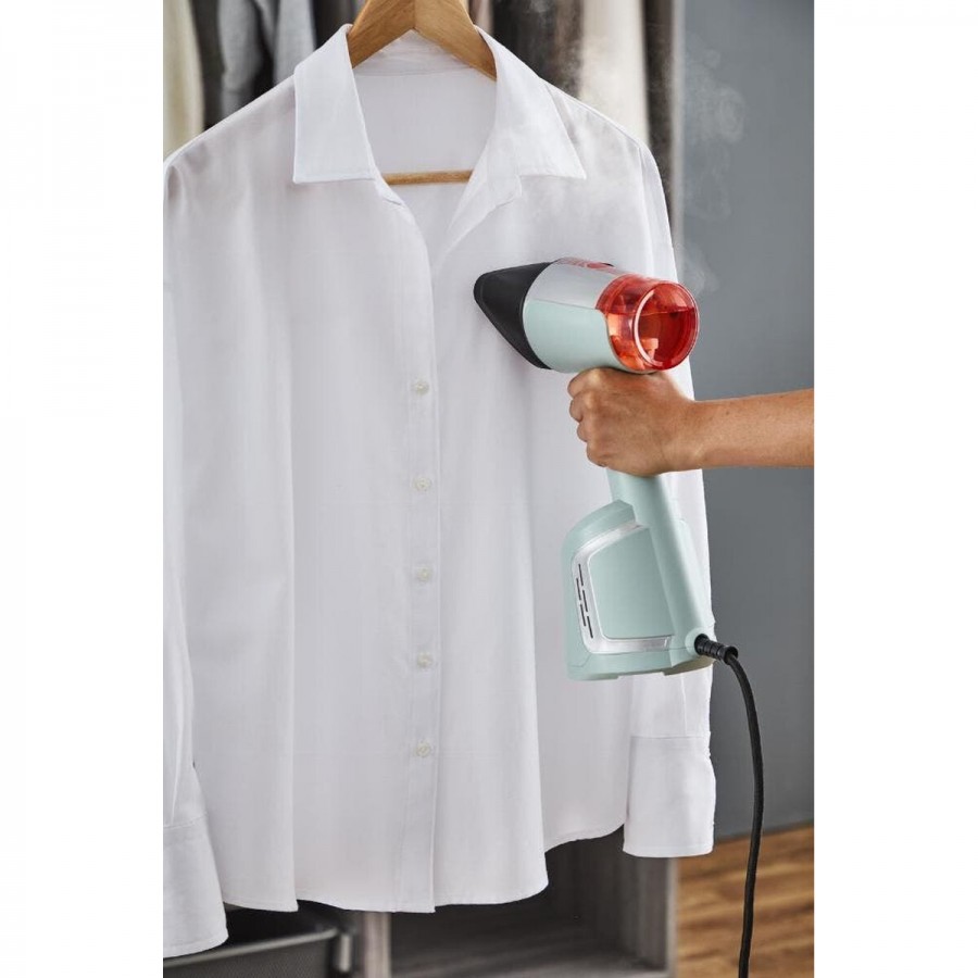 Het afneembare reservoir van 100 ml biedt voldoende capaciteit voor meerdere kledingstukken zonder tussentijds hervullen. Handig voor drie overhemden of vier T‑shirts in één sessie.
