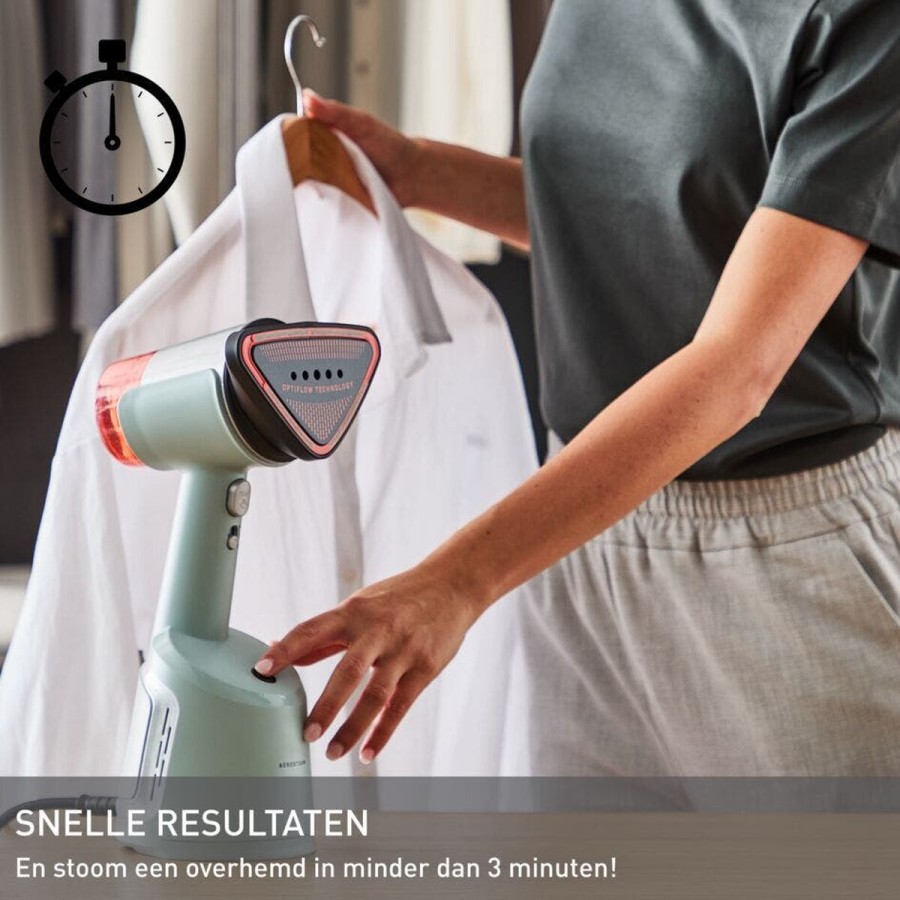 De Tefal DT9814 wordt snel klaar voor gebruik en levert stoomresultaten die vergelijkbaar zijn met een traditioneel strijkijzer, zonder dat je een strijkplank nodig hebt.