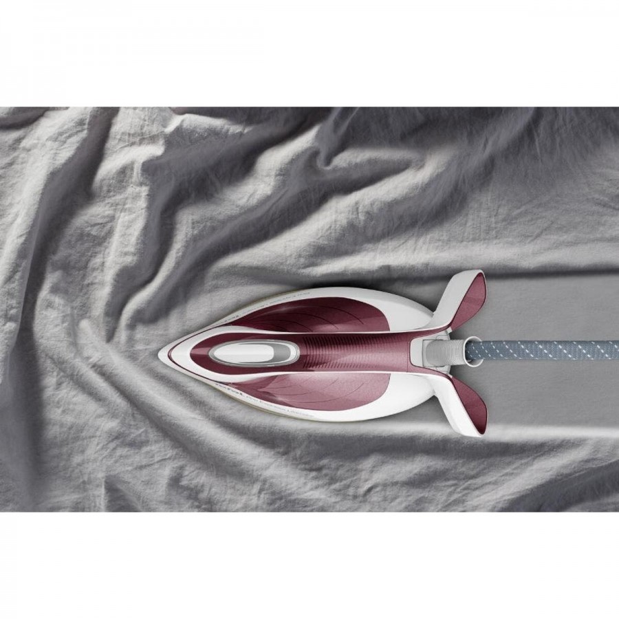 Het Tefal GV9711 Pro Express Ultimate II strijkijzer genereert een indrukwekkende stoomdruk van 7,5 bar, wat zorgt voor een diepe penetratie in de vezels. Deze technische werking resulteert in een continue stoomafgifte van 155 g/min en een krachtige stoomstoot van 590 g/min, waardoor zelfs de meest hardnekkige kreukels in kleding en huishoudtextiel moeiteloos worden verwijderd en u tijd bespaart tijdens het strijken.