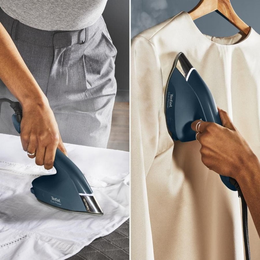 Deze Tefal JF4032 stoomstrijkijzer is een veelzijdig 2-in-1 apparaat dat zowel verticaal stomen als horizontaal strijken mogelijk maakt. Het combineert een uitzonderlijk krachtige stoomstoot van 180 gram per minuut met een snelle opwarmtijd van slechts 30 seconden. Dankzij de keramische zool en het geïntegreerde antikalksysteem garandeert het professionele resultaten en een langdurige prestatieduur. Of u nu snel een shirt wilt opfrissen of hardnekkige kreuken uit een gordijn wilt halen, dit apparaat biedt de ultieme flexibiliteit en efficiëntie voor elke stof.