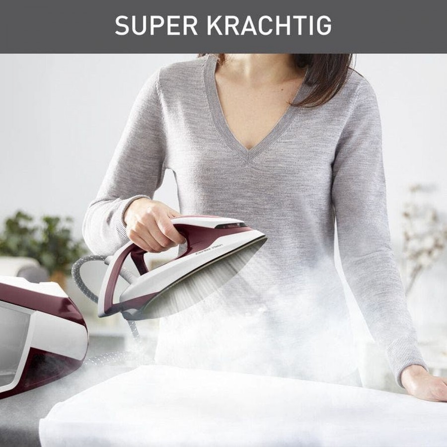 Het Tefal SV8150E0 Bordeaux strijksysteem is uitgerust met een professionele stoomdruk van 6,8 bar en een continue stoomafgifte van 130 g/min, wat technisch zorgt voor een diepe penetratie van stoom in de vezels. Dit vertaalt zich direct naar een gebruikersvoordeel waarbij het strijken van grote stapels kleding, inclusief dikke stoffen zoals denim, aanzienlijk sneller en moeitelozer verloopt, zodat uw was in een fractie van de tijd weer kraaknet is.